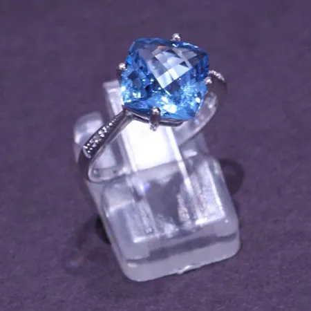 The charming topaz stone ring emits brilliant radiance in a graceful blue color. Finely encrusted with high-quality white gold, the admirable ring exhibits a perfect shimmering curve. The precious ring, well sculpted with the blue topaz stone, is a perfect gift to your beloved one.