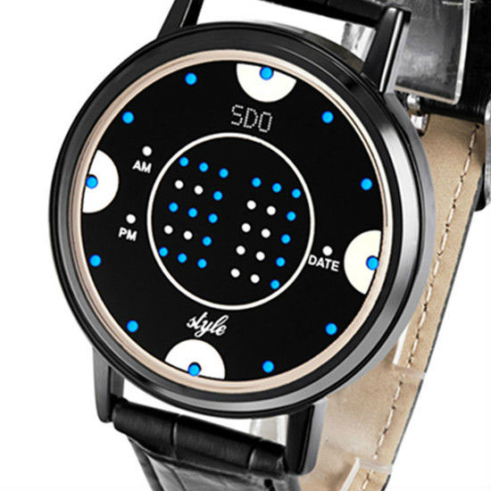 This watch comes in a sleek and elegant design. The dial is designed with LEDs for delicate lighting effects and easy time reading. The genuine leather strap enhances the watch's luxuriousness and guarantees optimal wearing comfort.
