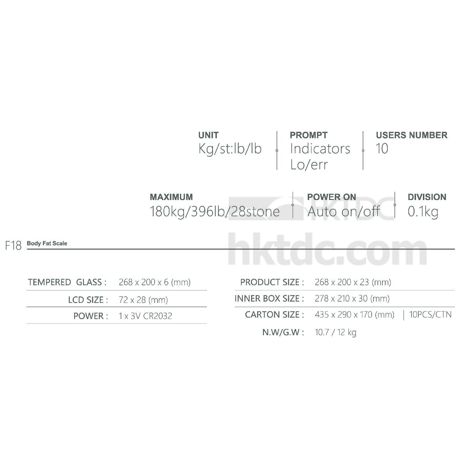 • Toughened glass 268x200x6mm Digital Body Fat Analyzer body fatscale, BMI function,MAX.180KG/400lb