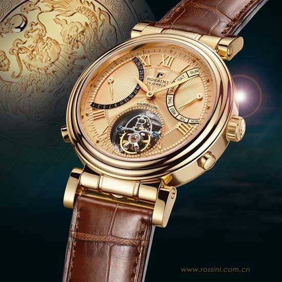 This sophisticated tourbillon watch is a beautiful blend of function and style. It boasts an 18K gold round case and crown, complemented by dark brown alligator straps with a gold-plated finish. The elegant skeleton sub-dial gives you a glimpse of the timepiece's intricate tourbillon movement. Additional features include 30-ATM water resistance, a transparent sapphire glass case back, and a stainless steel fold-over clasp closure.