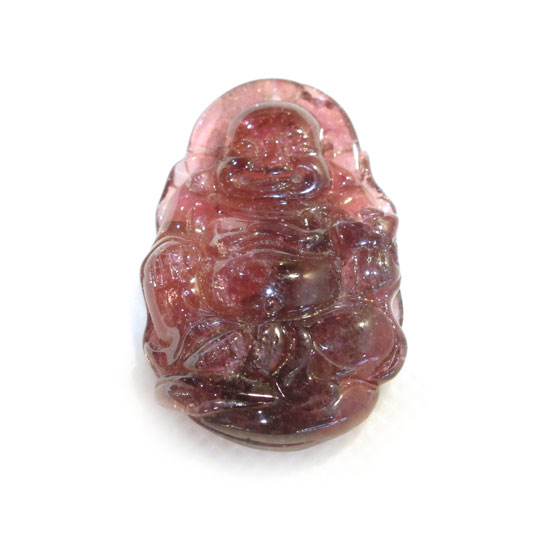 Add an Eastern spirit of joy and prosperity throughout your home with this tourmaline Buddha carving. Beautifully handcrafted, this Buddha carving features a warm and happy face. The tourmaline carving showcases a smooth, polished finish.