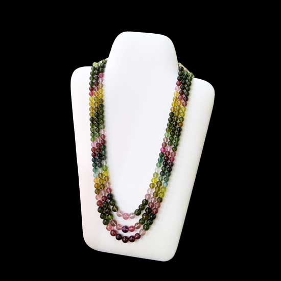 This elegant necklace features three-layer tourmaline beads in fancy colors. It is finely crafted to deliver maximum luster and exceptional beauty. This fine jewelry is ideal for adding a touch of glamor to your outfit.