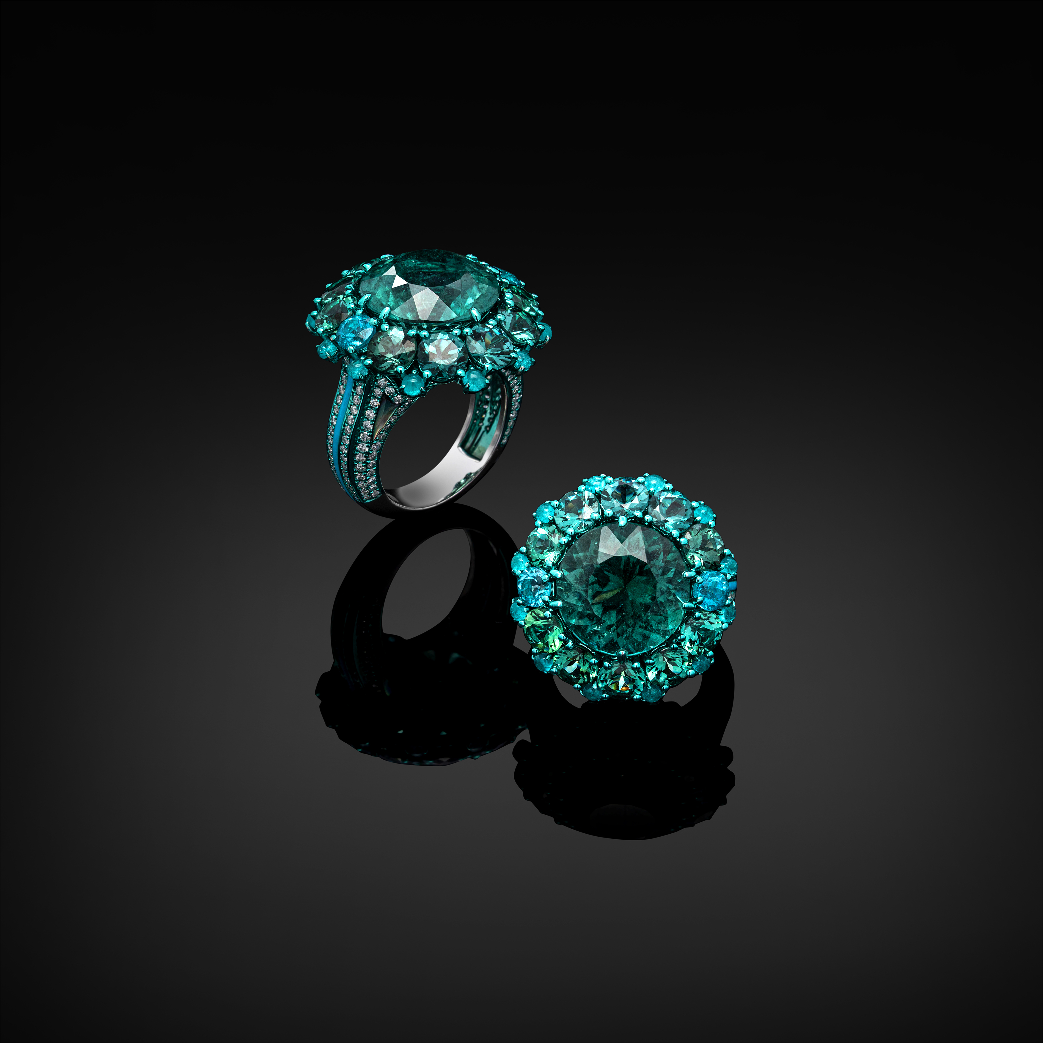 18K White Gold, White Diamond, Abalone Shell, Tourmaline