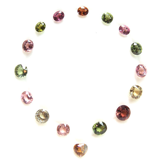 Showcased here is a fancy tourmaline set in charming rainbow colors. Each of these crystalline stones exhibits distinct glamour and sparkle. These gorgeous gemstones come in various shapes and sizes for you to choose from.