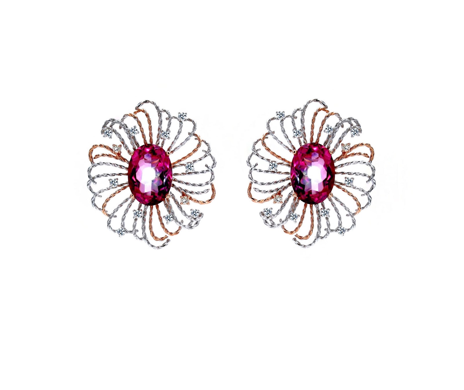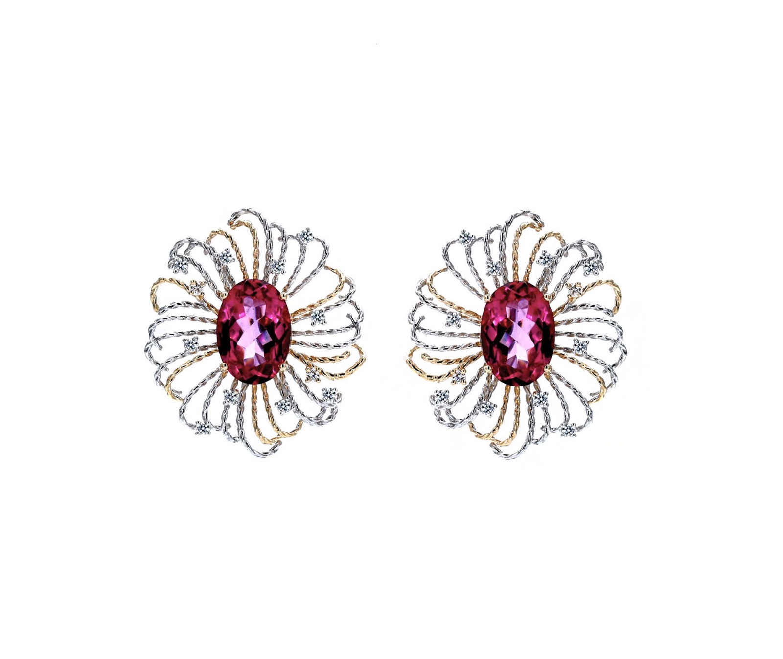• Natural Tourmaline White Diamond in 14K Rose & Yellow Gold.