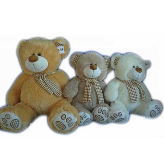 Featured are three toy bears in different sizes. They come in a sitting gesture, with a scarf around their neck for a unique touch. These toy bears are soft and comfortable to cuddle.
