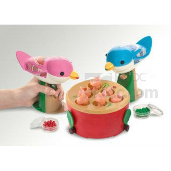 As shown are a pair of toy parent birds and their baby birds. This toy is best for gift for kids. Kids can learn about what parental love and care is. This toy mimics the feeding processes of birds.