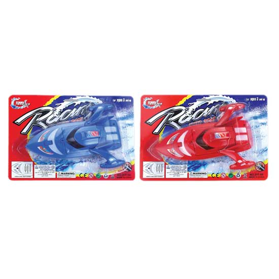 This stylish toy boat features a streamlined design and a sharp red color. The realistic toy boat is a great bath toy for boys. It comes with a blister card package.