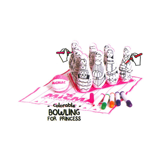 This is a toy bowling set that is colorable. Each bowling ball is designed with a sketch figure which needs children to color it themselves. This set will let children have painting and playing fun.