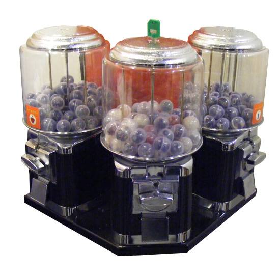 The featuring products are three toy capsule machines with different toy capsules inside. Simply insert a coin and twist the knob, then a capsule will come out from the mouth.