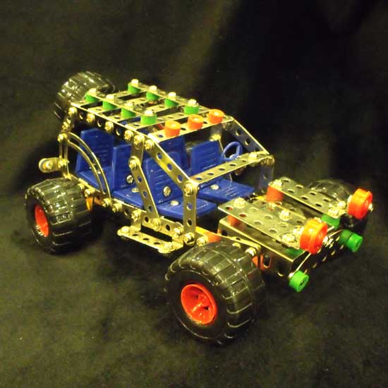 Featured is a toy car with a bare iron frame and chassis for a unique design. The off-road vehicle style is truly appealing. It simply makes a distinguished toy and decoration for a kids' bedroom.