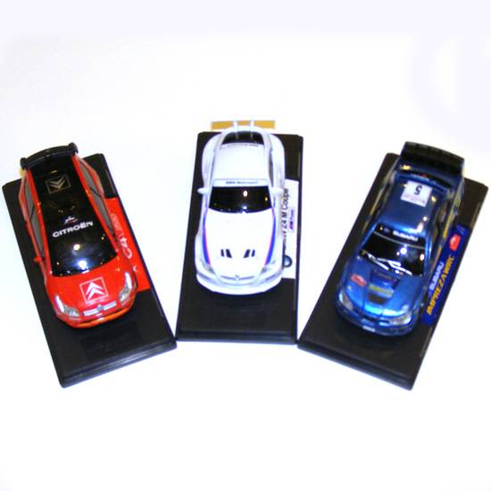 These are die-cast plastic toy car models. They are in sports car style. Each of them come with a black stand and a glass box.
