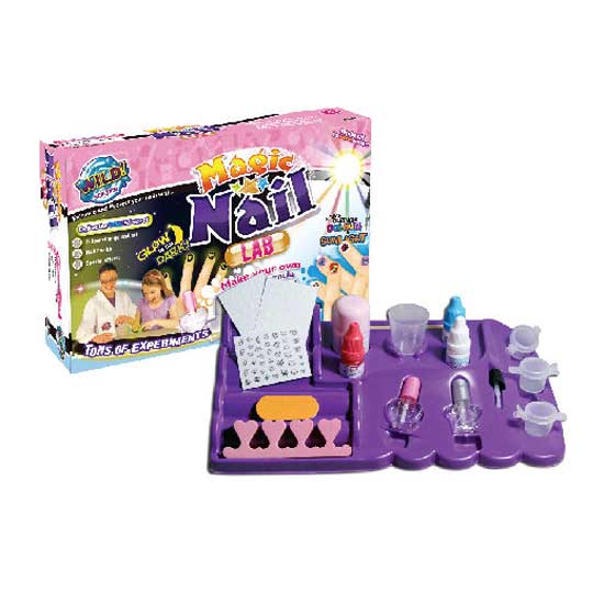 The Magic Nail Lab kit is so much more than just another nail polish kit. This nail playset uses industry-standard polish bases, pigments and effects to create your own range of customized polishes and mica mineral shimmers for special optical effects. It also allows you to create super hi-tech nail art that changes color under sunlight and glows in the dark.