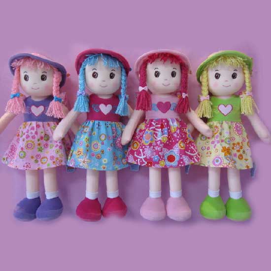 The toy doll is dressed in stylish one-piece dress with adorable face. The big eyes and long tails add to her charm. The toy doll is surely adorable and attractive to be fondled by little girls.
