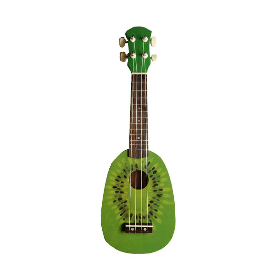 This toy guitar appeals to children easily with its unique look. It is printed with a pattern of a kiwi cross section in green. Let your little musician have hours of fun with this wooden guitar.
