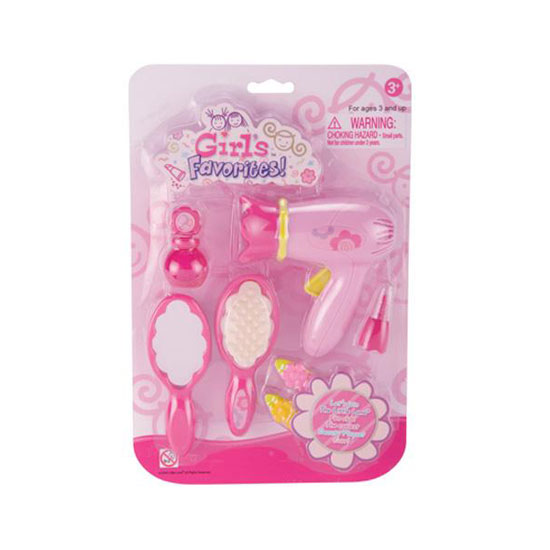This is a toy hairdryer set with assorted accessories. They are mainly designed in pink with colorful accents. This toy beauty set surely is a perfect choice as a gift for girls.