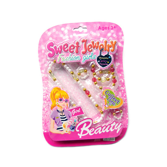This is a high-quality toy jewelry set that is finely packed in a blister card. This interesting toy set is made of quality materials for durability. Let your little one have hours of fun with this colorful toy jewelry set.