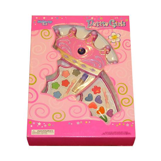 This is a toy make-up set for young girls. It has a multi-layered glass cosmetic case that contains various cosmetic items and tools. An ideal gift that is favoured by young girls.