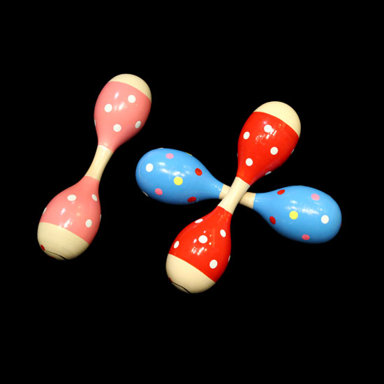 This is a collection of toy maracas that comes with polka dot patterns. Made of wood, these shakers are durable and offer pleasant sound. With a compact size, these maracas are comfortable for holding in the hand.