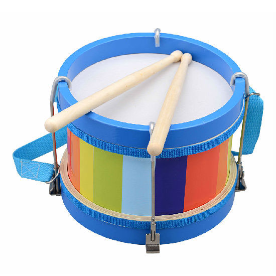 This toy military drum is designed in a simple round shape. It comes with a long strap for carrying the drum on the body to make you look like a real military drummer. The colorful design is exceptionally pleasing to the eyes.