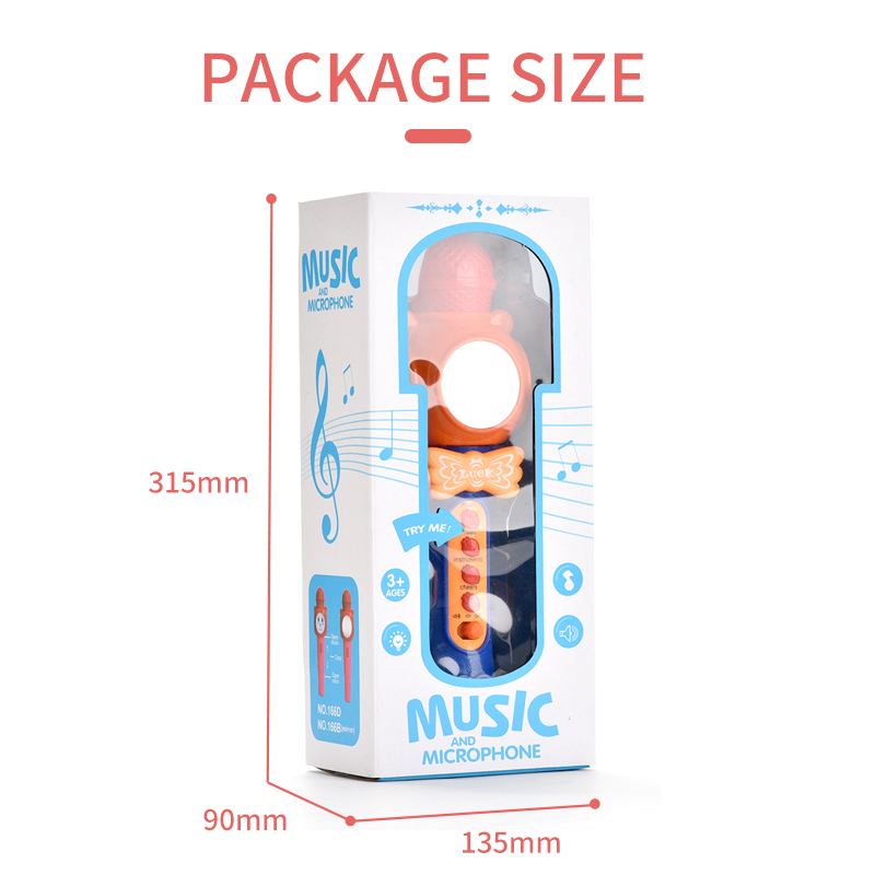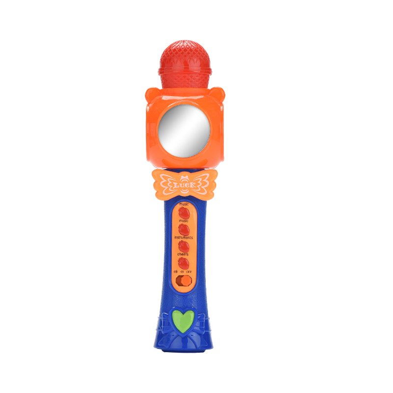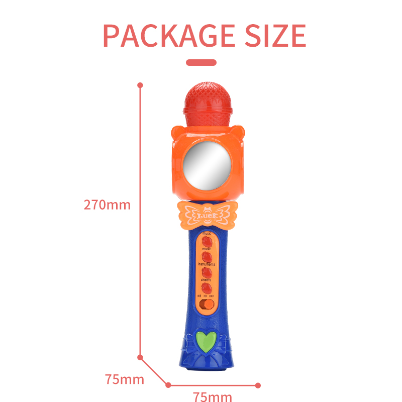 This toy microphone is battery operated and offers light and music function. It is decorated with bows and has buttons on the handle for on/off, music, instruments and cheers. The toy microphone is comfortable for little ones to hold and can help develop the musical talents of kids at a young age.