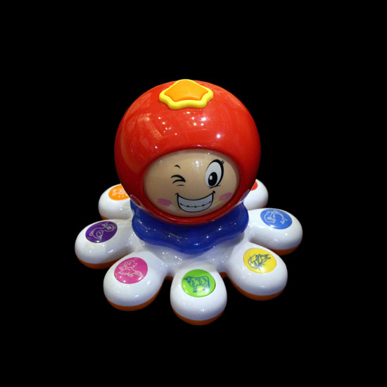 This is a toy octopus that comes with a colorful design. Made of plastic, this lightweight toy octopus features light and sound functions. This small toy octopus is a great choice for children above 3 years old.