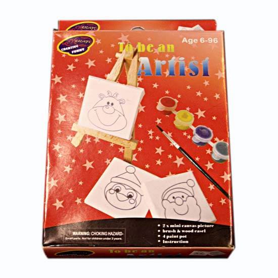 The toy painting set is designed for your kids. It includes 2 mini canvases, a wooden easel, 4 paint pots and a brush. Exercise your creativity and be an artist with this adorable toy painting set.