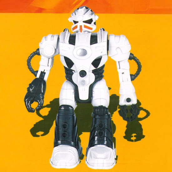 Entertain your kid with this creative toy robot. This robot comes with a white finish and an impressive look. It is perfect to play with on tables.