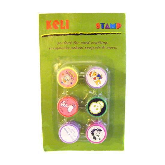 This is a toy stamp set which consists of 6 toy stamps of various colours and designs. The stamps are suitable for children's use.