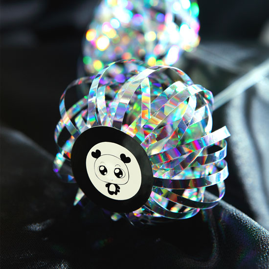 This beautiful DIY toy stick features a lantern-shaped top made of hologram sheets. It is accented with a cartoon graphic for added appeal. This rainbow stick can be used in various role-play games or to make assorted patterns.
