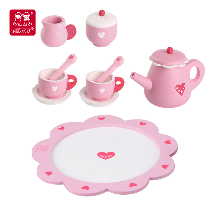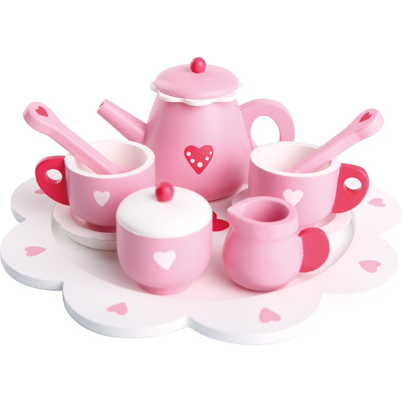 The toy tea set is expertly designed using child-safe, non-toxic, and durable materials to ensure long-lasting use and utmost safety. Its adorable pink color and lovely detailing make it an attractive and delightful toy for children. This comprehensive set includes everything the little one needs for a perfect pretend tea party: a teapot, a sugar dish, a creamer, a tray, two tea cups, two spoons, and two saucers.