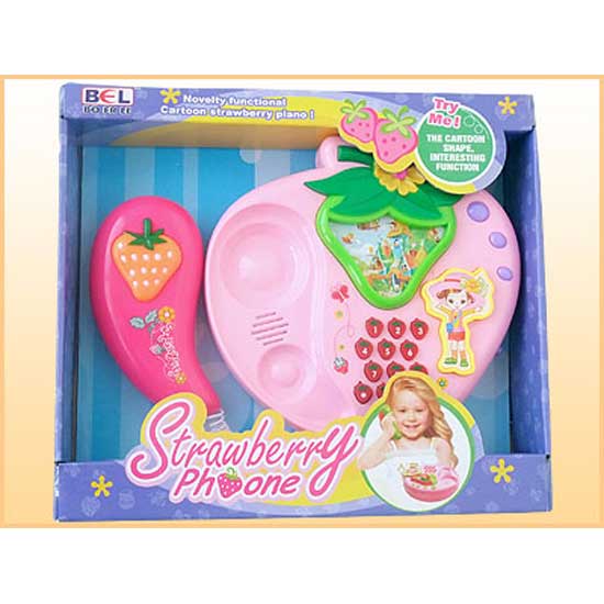 The outlined toy telephone comes in a lovely pinkish strawberry shape. The toy telephone is well made of sturdy material for enhanced durability. It is designed with lighting and musical functions for added fun and enjoyment.