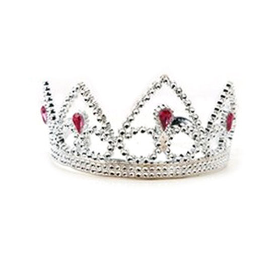 This is a toy tiara made of quality ABS material. It comes with silvery plating and red pear-shaped stones. This dainty tiara will delight your little princess instantly.