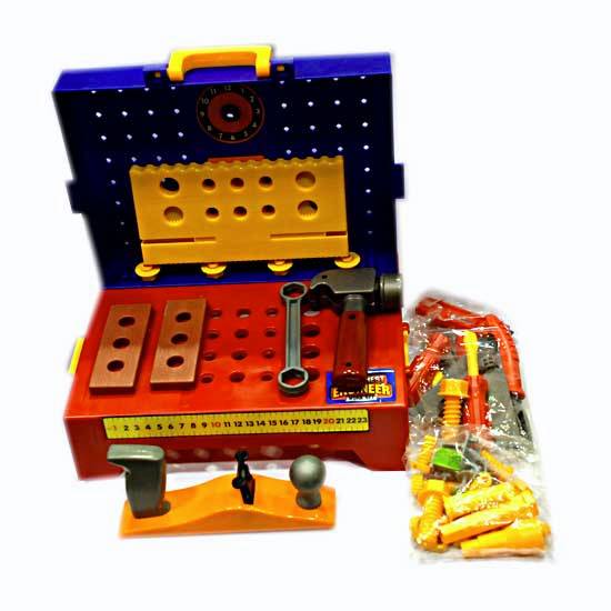 This is a toy tool set designed for children. It comes in a colorful design with various toy tools to teach children about engineering. This toy tool set is made of 100% toxic-free material to guarantee safe use.