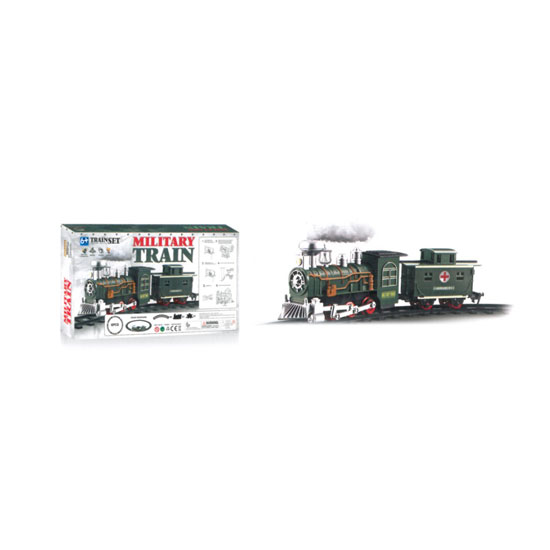 This is a toy train set that is certified to meet various safety standards. It is suitable for kids aged 6 years and above. This toy train set comes with light and sound effects for added fun.