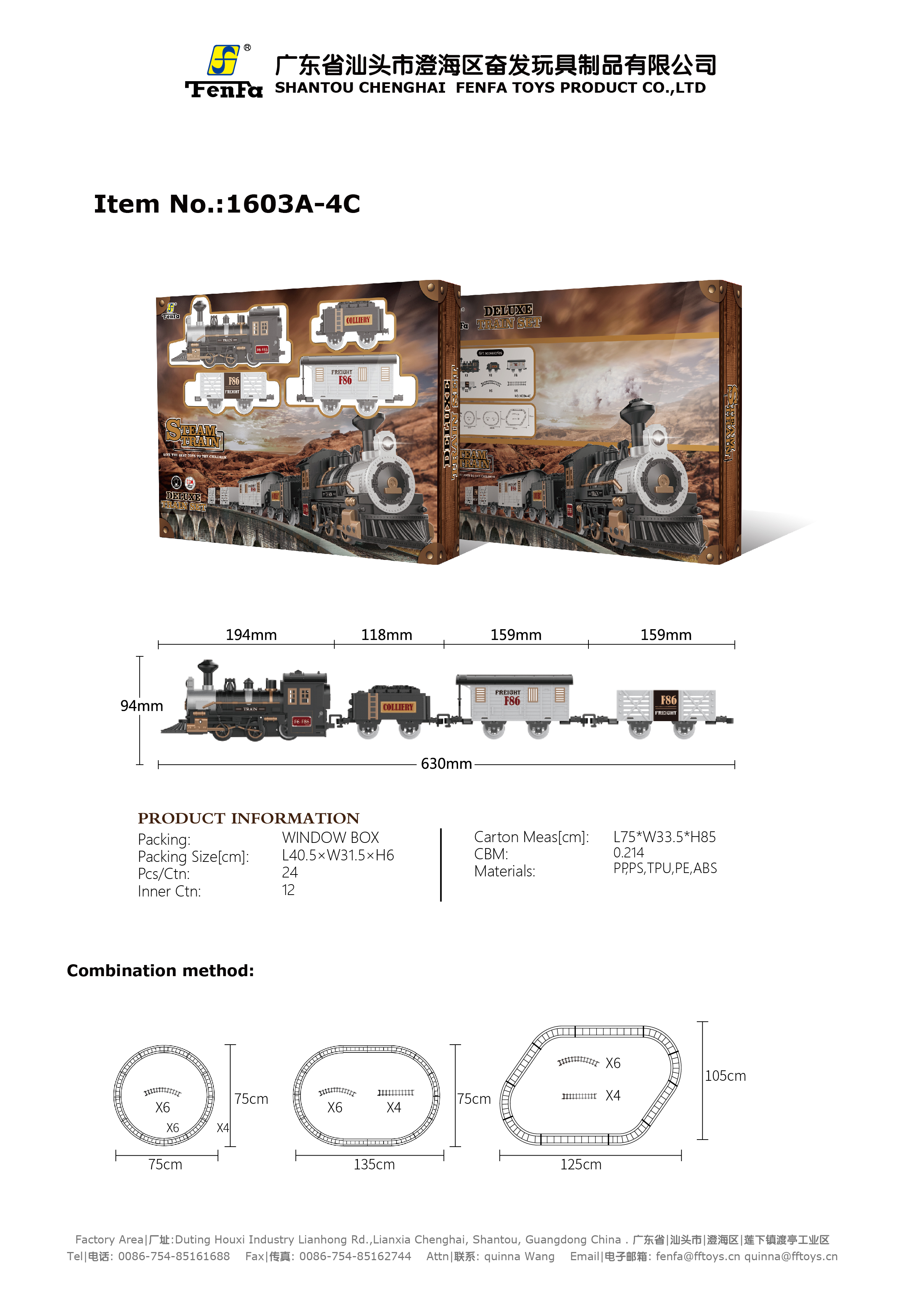 Locomotive:1pcs, Carriage:3pcs, Curved Track:6pcs, Straight Track:4pcs;