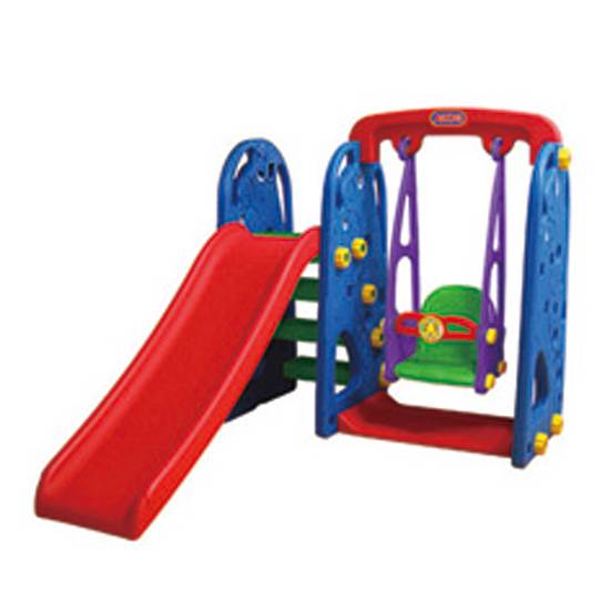 This is a set of toy slide and swing with giraffe animal patterns. This set is designed with a combination of red, blue, purple and green colour. A perfect toy for active kids.