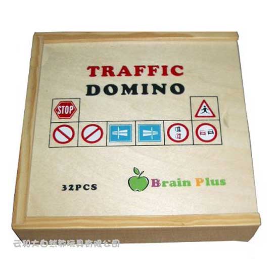Highlighted here is a traffic domino set with 32 pieces. It comes with a wooden box for easy storage. This traffic domino set offers hours of fun for your kids.