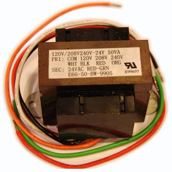 - Primary voltage: 120V (black), 208V (red) and 240V (orange) 50VA.
