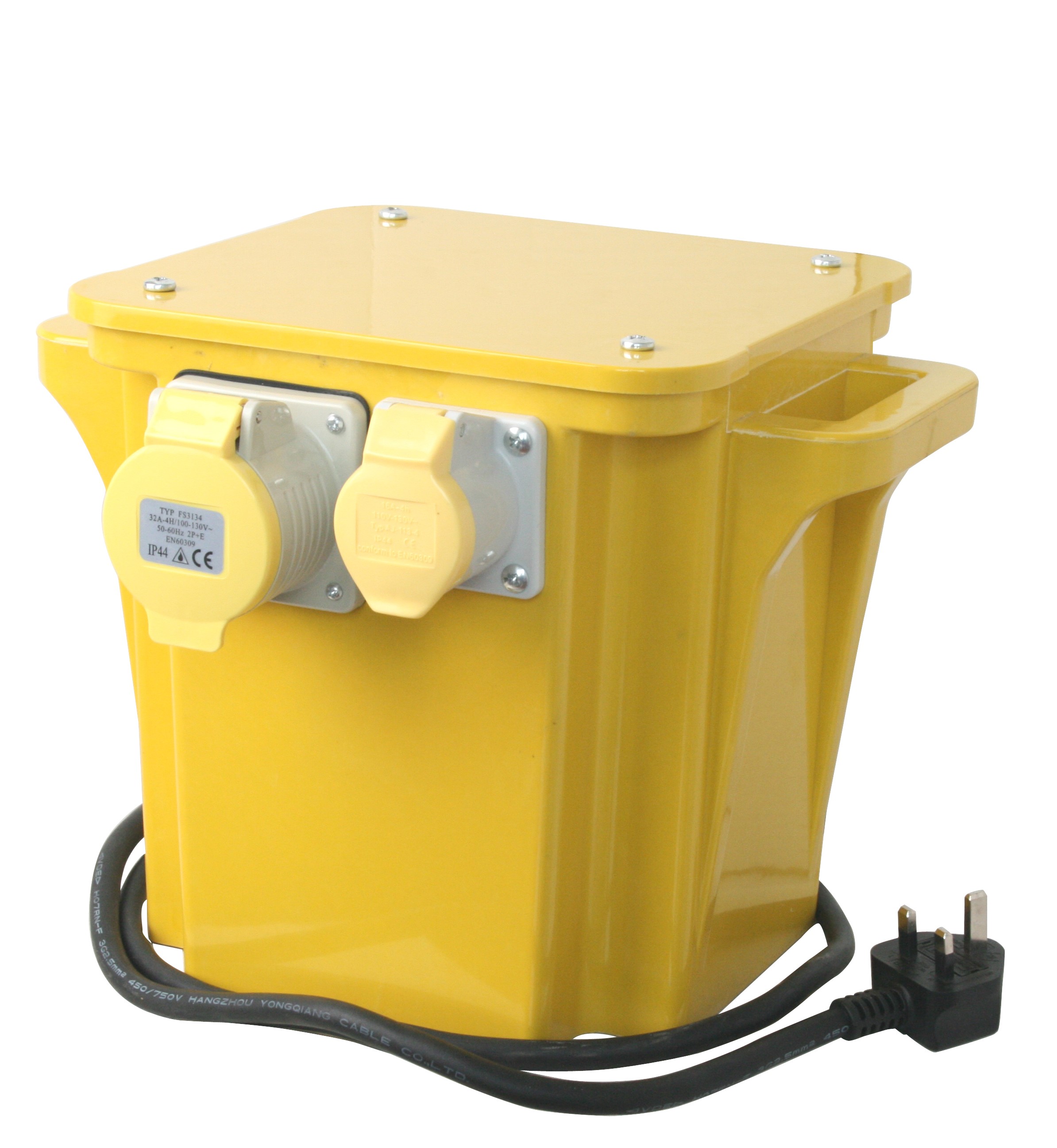 • Insulated splash proof GRP portable case (IP44) centre tapped to earth (cte) secondary winding to reduce the risk of shocks 2m