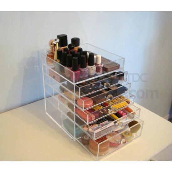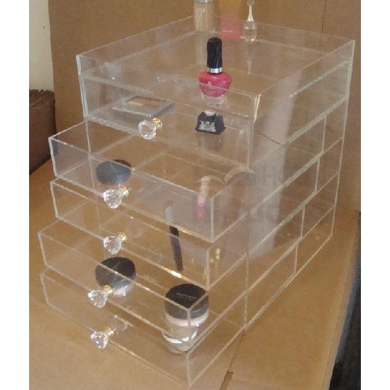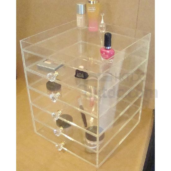 Transparent Perspex Makeup Holder Acrylic Nail Polish Stand-5 Drawer Plus A Tray