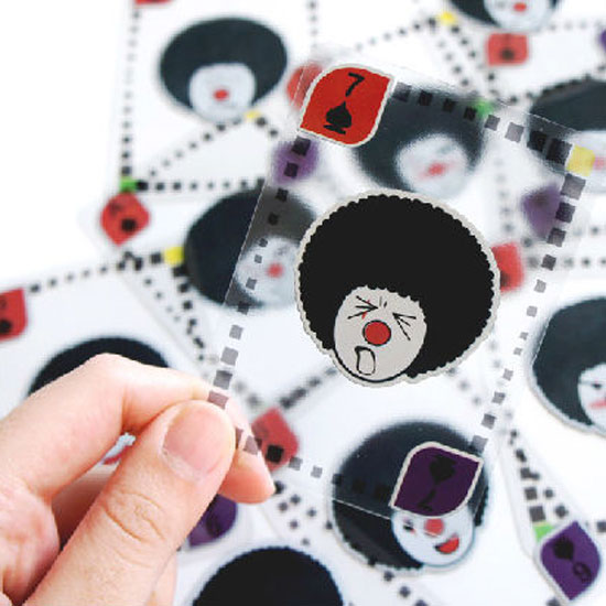 This deck of full-color playing cards is unique with its transparent design. Each card is decorated with a clown's face for added charm. Made of quality PVC, this deck is both waterproof and durable.