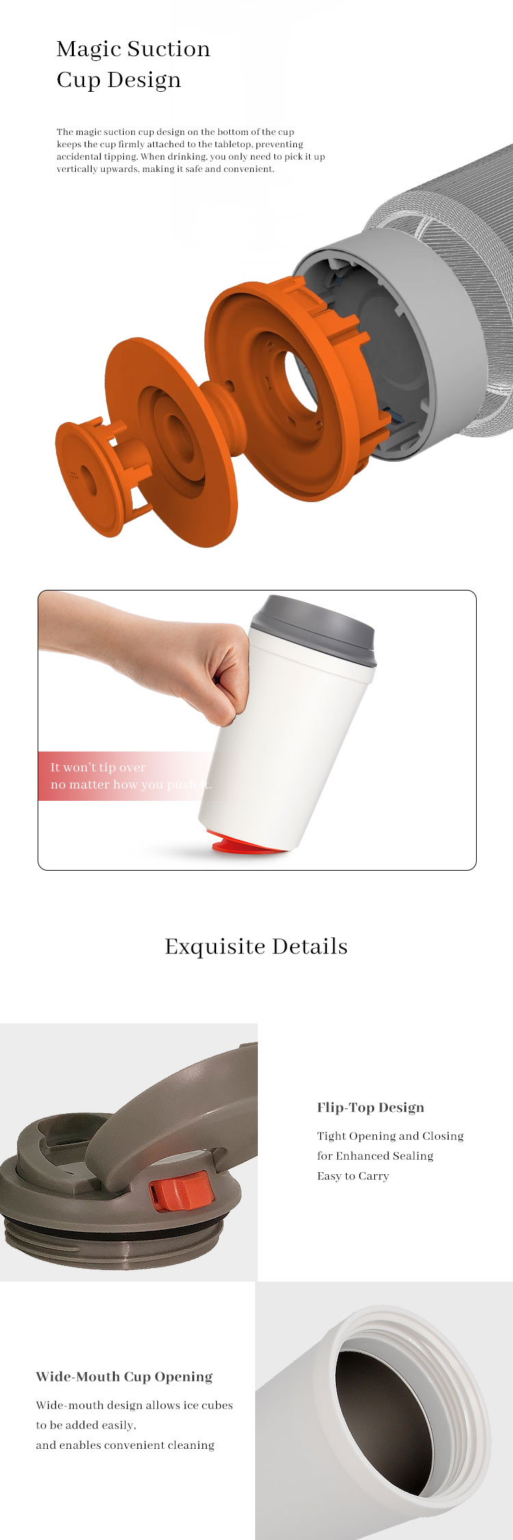 • Leak-proof buckle cover that flips and fixes at 180 degrees