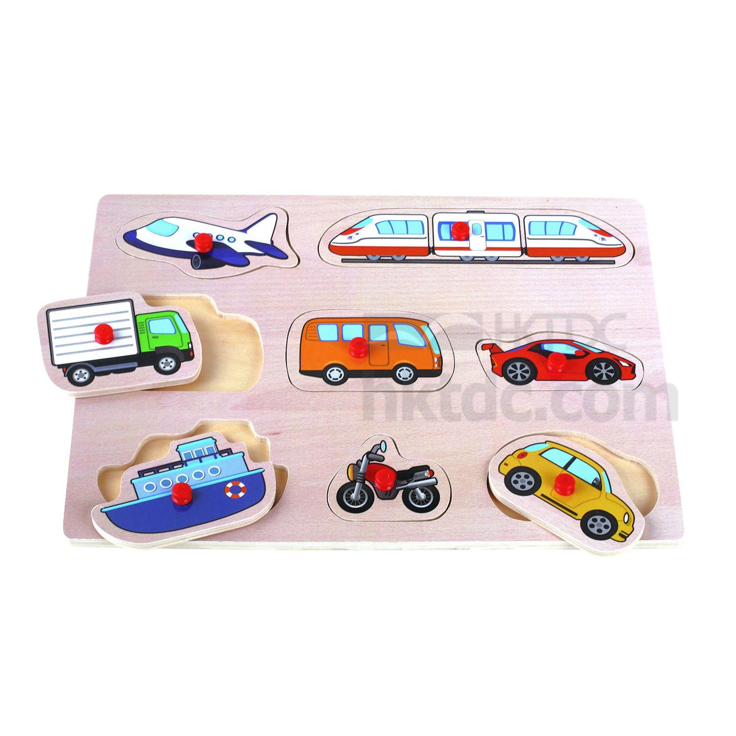 • Containing various vehicle pieces in bright colors and different shapes, this transportation peg puzzle provides a great way to introduce transportation to a child.