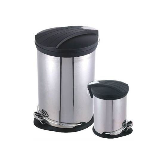 This is a pedal trash bin featuring a stainless steel body for durability. It comes with a sturdy base and a robust plastic lid. Different sizes and assorted colors are available for your selection.