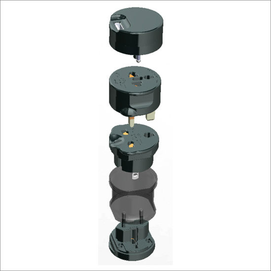 • Retractable plastic third pin helps engage sockets with safety shutter mechanism.