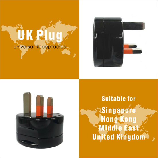 • Grounded UK receptacle for United Kingdom, Hong Kong, Singapore and Middle East.