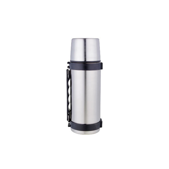 This is a water bottle with a stylish design. It features a strong metal structure in a cylindrical shape. This well-made bottle surely is a must-have accessory for travel use.