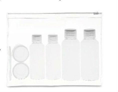 • 2pcs 80ml PET bottle with screw cap, 2pcs 50ml PET bottle with screw cap 2pcs 10ml cream jar and 1pc spatula.