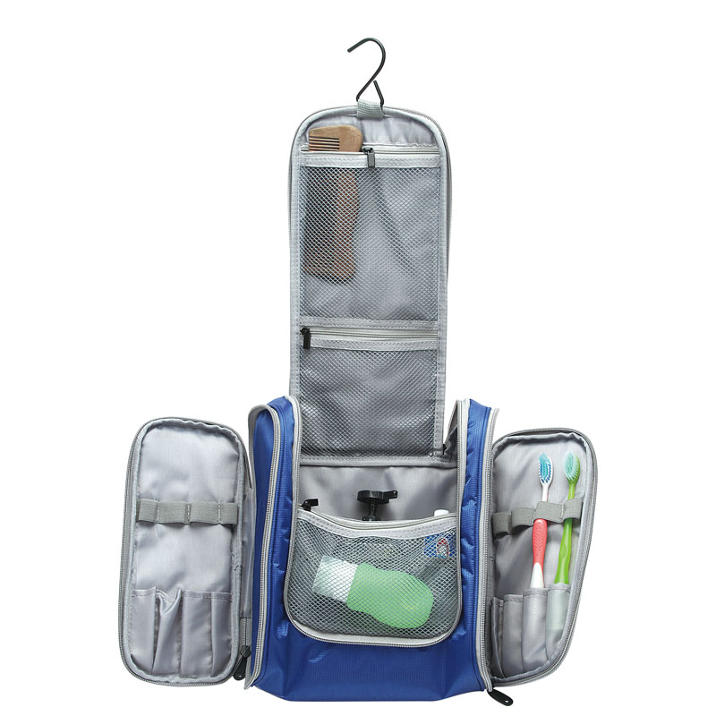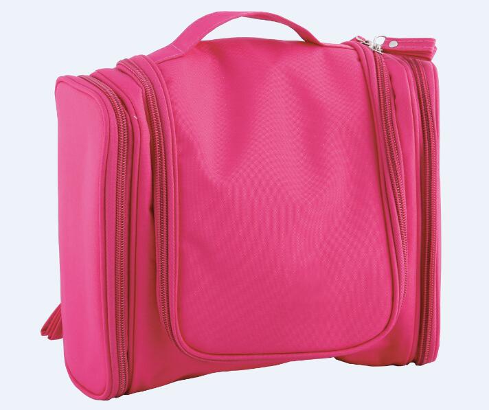 Featured here is a travel cosmetic bag for storing cosmetics, toiletries, jewelry etc. It is made of dobby nylon fabric and has multiple pockets and compartments for maximum organization. This cosmetic bag has a comfortable handle for easy carrying and can fold up nicely in the luggage when not in use.